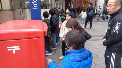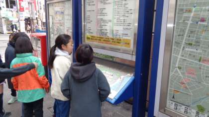 八王子駅前では、グループに分かれて、調べ学習をしました。案内板や郵便ポストに「点字」があることにも気が付いていました。