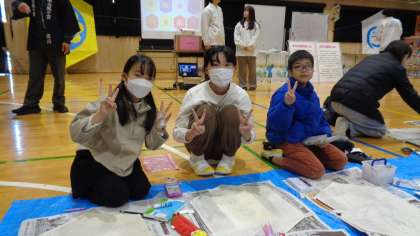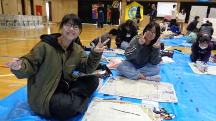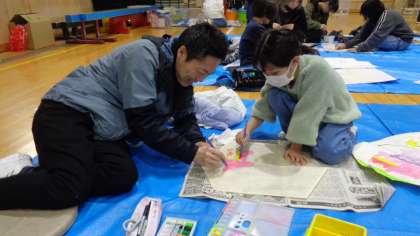 まずは凧に下絵を描いて、色塗りから始めます。みんな思い思いの下絵を準備してきたようです。