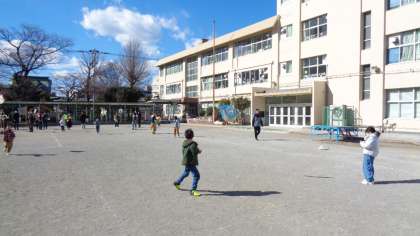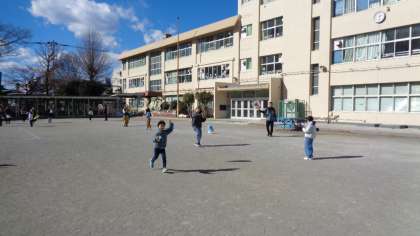 いよいよ校庭で凧あげです。校庭が狭いため、一歩通行での凧あげとなりましたが、みんな嬉しそうに走っています。