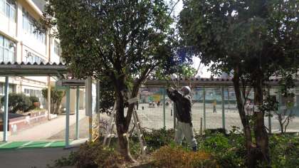 チェーンソーやのこぎりを使い、次々に枝を落としてくれています。