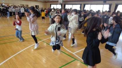 まずは3年生の「ゲーム(6年生クイズ)」です。代表の子がルールの説明をしています。
