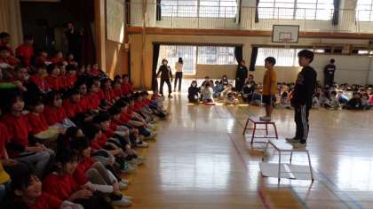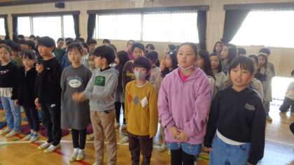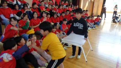 最後は、6年生にお礼の言葉を述べてくれました。○×札を持った子が、6年生から誉めてもらっていました。