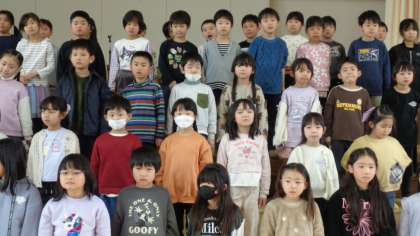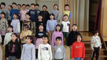 もうすぐ2年生。先輩になる1年生です。元気な声で歌っていました。頑張ってね。