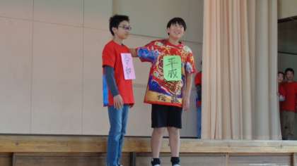 次は、6年生からのお礼の出し物です。6年生はちょうど、平成から令和への切りかわりの年の入学でした。