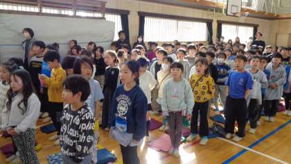 1・2年生が、感謝の気持ちを込めて、大きな歌声で歌ってくれています。