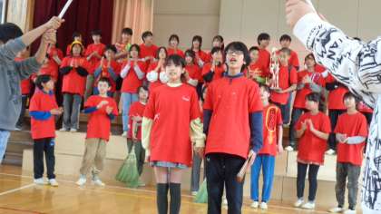 楽しかった「6年生を送る会」も終わりとなりました。最後に、6年生が笑顔で退場します。
