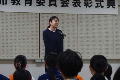 式典では、安間教育長の挨拶と、シドニーオリンピック競泳女子で銅メダルを獲得し、現在、八王子市教育委員を務められている田中雅美委員が挨拶されました。