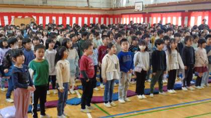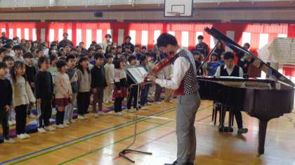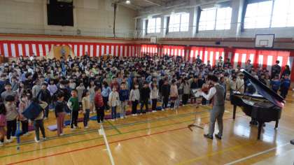最後は第一小学校校歌を伴奏していただき、みんなで歌いました。ありがとうございました。