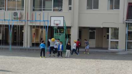 14日(金)の朝の風景です。校庭で遊ぶ子もいます。
