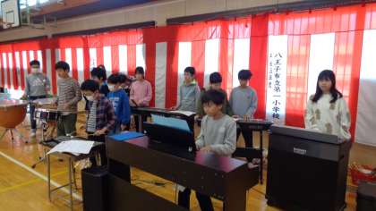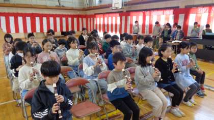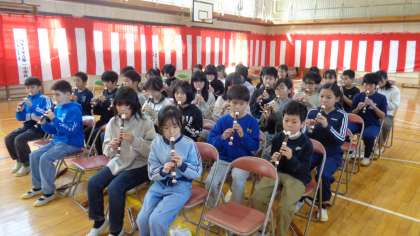 金曜日に続いて、5・6年生の卒業式合同練習がありました。5年生が入場曲「威風堂々」を演奏してくれます。