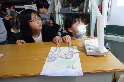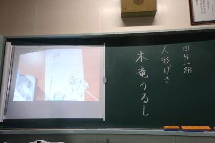 4年生が国語の授業で「木竜うるし」の学習をしています。その発展学習として、ペープサートで朗読をしました。