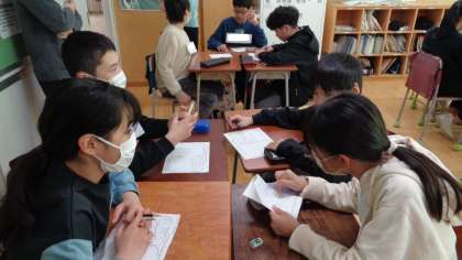 内容は部活動と英語担当の先生の人物紹介でした。それをグループのメンバーで共有しています。
