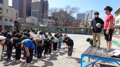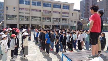 6年生が5年生にお礼を言っていました。