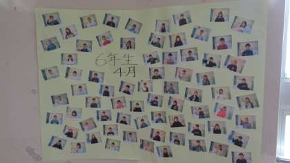 体育館入り口には祝電が飾られています。6年生の4月に撮った個人写真も貼られています。