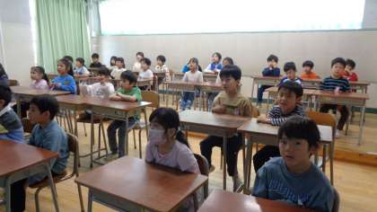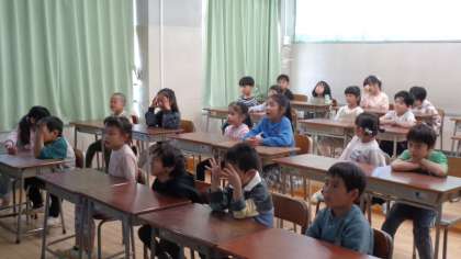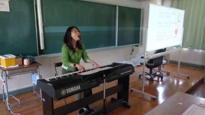 1年生を迎える会で歌う歌を、1年1組の子どもたちが初めて練習していました。当日が楽しみです。