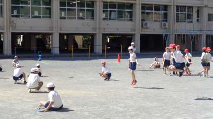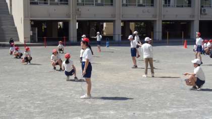 校庭で2