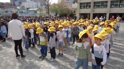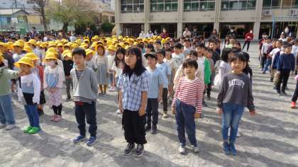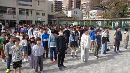 全員で校歌を歌いました。6年生がいい声を響かせてくれています。