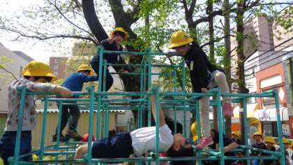 ミニ公園は低学年に人気の遊び場所です。