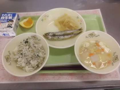 「わかめごはんにじゃこも入っていた!うれしい!」