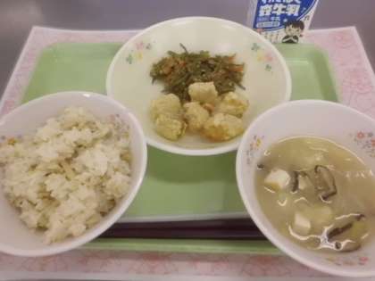 旬のたけのこを使い 「たけのこごはん」 をいただきます。