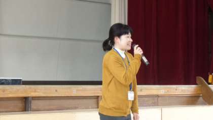 24日(木)集会前、子どもたちに新しく赴任されたスクールカウンセラーの先生の紹介をしました。