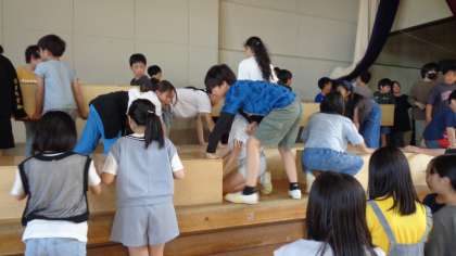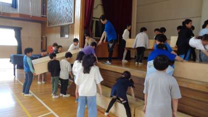 最後は体育館のひな壇等を、5年生が片付けてくれました。ご苦労様でした。これからもよろしくお願いします。