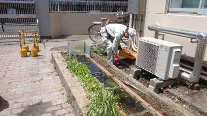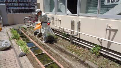 メダカ池周りの雑草を用務主事さんが刈り取ってくれていました。