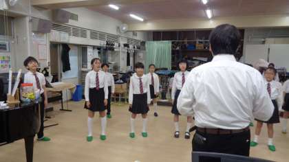 5月10日(土)、合唱団児童16名が「全日本こどもの歌コンクール」に向けて最後の練習をしています。