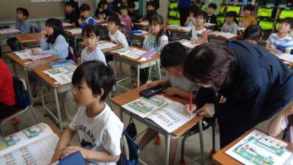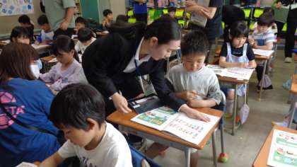 担任だけでなく、新人育成教員の先生も机間指導をしています。