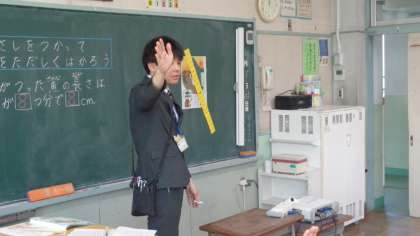 「○○がいくつ分」という考え方ではなく、基準となる長さを使った用具(ものさし)を用いて調べる方法を考えました。