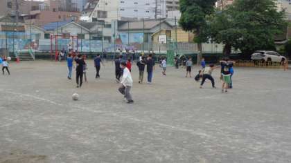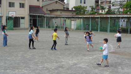 今朝の校庭のようすです。教室に入った子どもたちが出てきて、朝から元気に遊んでいます。