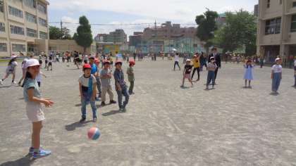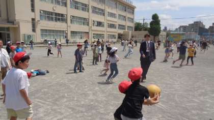 教育実習生も3年生と一緒にドッジボールをしていました。