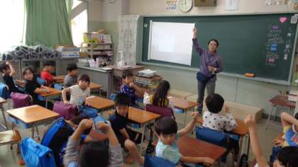 1年2組も算数の授業中でした。ゲームを取り入れて、数の合成と分解を学習していました。楽しそうでした。