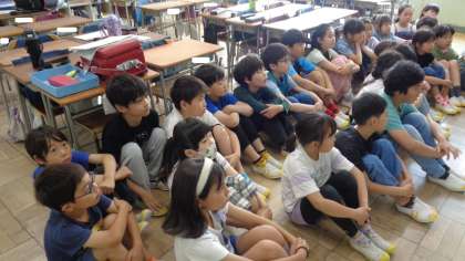 3年2組のようすです。今回は高尾山にある「開運 たこ杉」のお話でした。