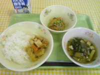 メニューカレーライス白菜の和え物恩方のブルーベリーヨーグルト牛乳八王子市の恩方で...