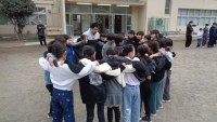 3年3組です。始まる前に円陣を組んで、気合を入れていました。頑張ってくださいね。