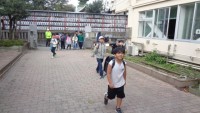 今朝の登校風景です。半袖半ズボンで登校する元気な子もいます。