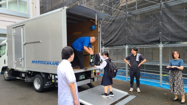 3年生が修学旅行に向けて、大荷物を搬入しております。