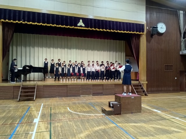 合唱コンクールに向けての合唱練習。体育館の様子です。