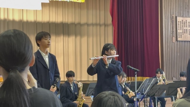 ウィンターフェスが開催され、吹奏楽部が演奏しました。