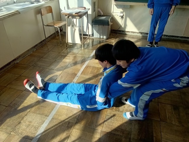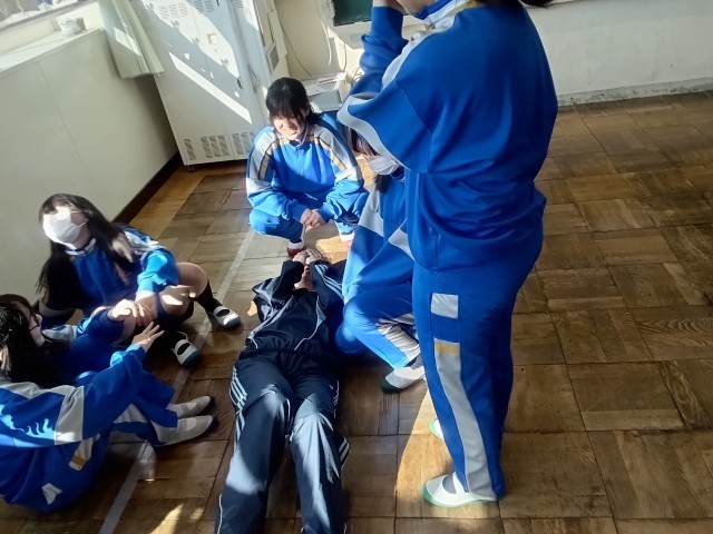 傷病者の運び方を学ぶ