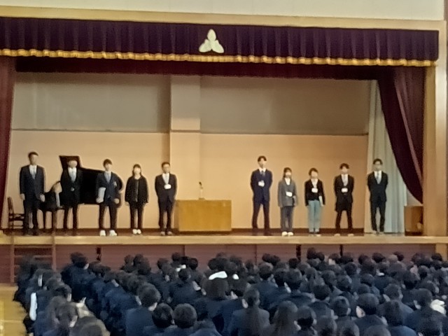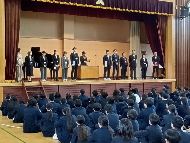 令和8年度が始まります。今年度もよろしくお願いします。クラス発表、着任職員の紹介、学年所属職員の紹介。