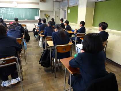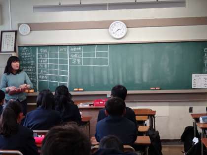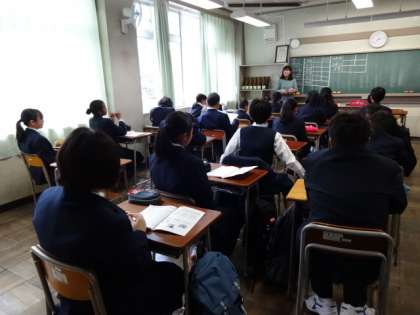1年4組、学級活動です。委員会や教科係りを決めています。