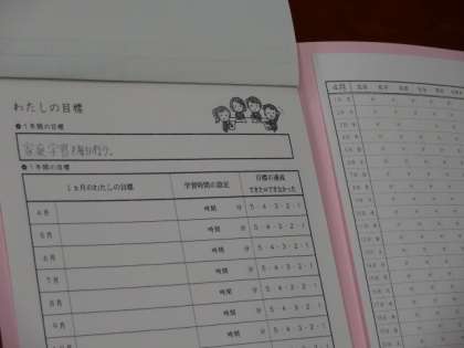 3年2組、学級活動。「マイ☆スタディ」の準備です。
