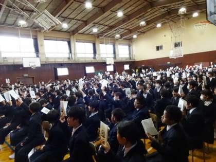 6時間目の生徒総会です。活動方針の討議の中には、「主体的に学び行動する(本年度の重点)」姿がたくさん見えました。