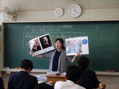 3年3・4組、英語。「ものごとを行った人についての情報を含めて説明しよう(受け身)」