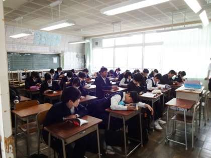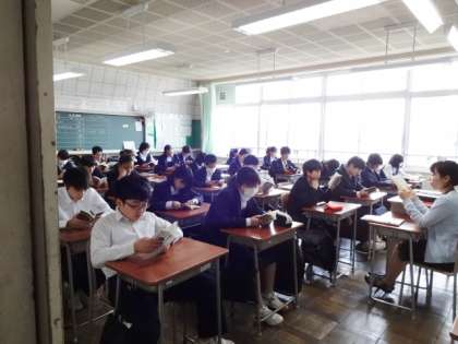 第一中学校の特色の一つ、朝読書。落ち着いた一日が始まります。2年生。