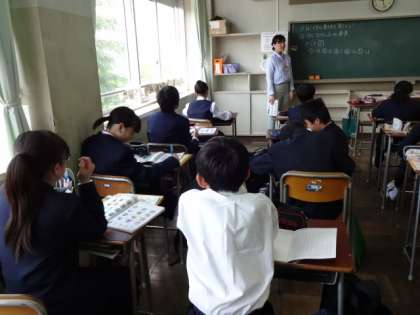 1年1・2・3組、英語。「ヘボン式ローマ字の書き方を覚えよう。アルファベットの発音ができるようにしよう」