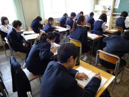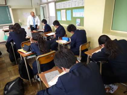 1年1・2・3組、英語。「ヘボン式ローマ字の書き方を覚えよう。アルファベットの発音ができるようにしよう」