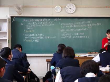 3年3組、社会。「満州事変によって、国際社会での日本の立場はどのように変化したか理解する」